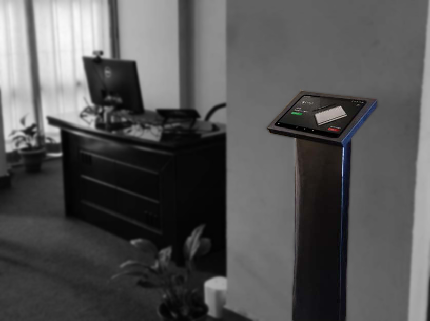 Desk based Ready to use KIOSK tablets or Custom Built Stainless Steel KIOSK Stand for a more streamlined setup (optional - on demand).